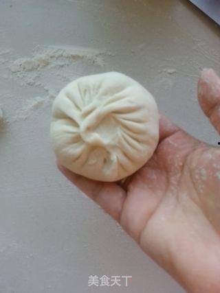 4. 包制:将醒发好的面团揉搓成长条,切成小剂子,擀成圆皮,包入调好的馅料,捏紧封口。