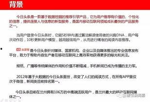 首先,你得知道什么是今日头条。简单来说,今日头条是一个基于大数据和人工智能算法推荐的新闻资讯平台。它通过分析用户的阅读习惯、兴趣爱好等,为用户推荐个性化的内容。而今日头条广告招商加工,就是指商家通过今日头条这个平台,进行广告投放和招商合作。